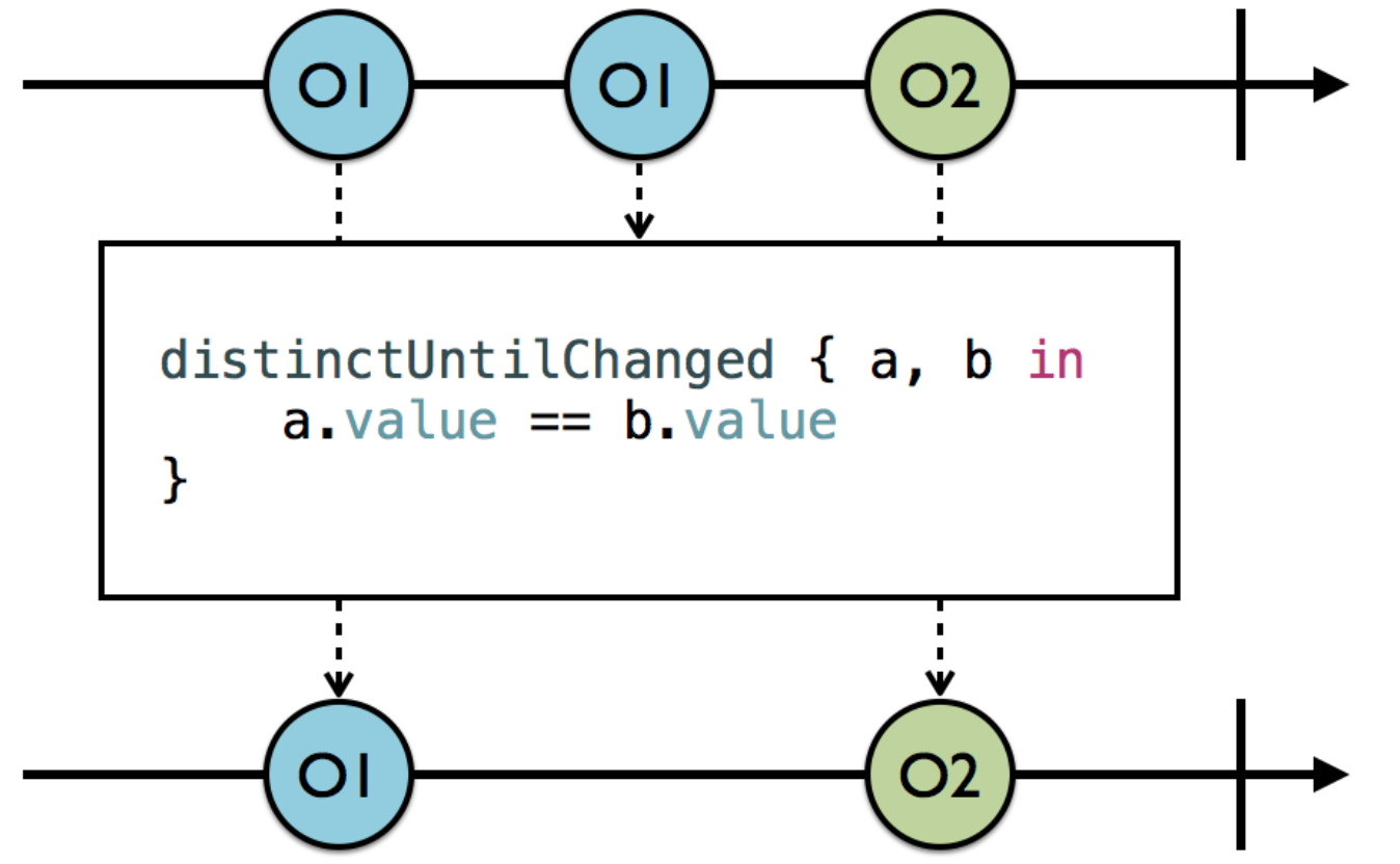 .distinctUntilChanged({ o1, o2 in