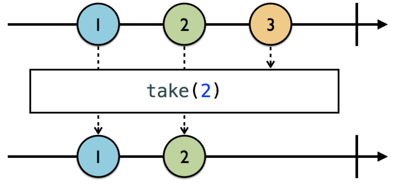 Taking은 Skipping의 반대 개념으로 생각하면 되는데, 우리가 어떤 element들을 취하고 싶을 때 take를 사용합니다. 예시를 보면, take로 설정한 처음 2개의 element를 취한 것을 볼 수 있습니다.