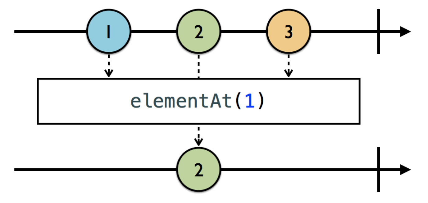 우리는 가끔 특정한 순서의 element, 즉 n번째 방출되는 element만 처리하고 싶은 경우가 있을 수 있습니다. 이 때 elementAt(n)을 사용하면, 해당 index에 해당하는 element만을 방출하고 나머지는 무시합니다.