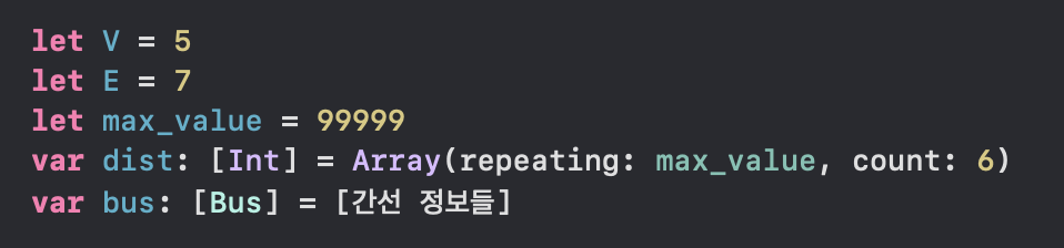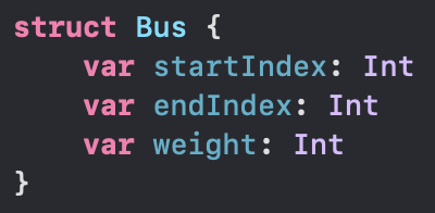 그리고 저는 간선의 정보를 Bus라는 구조체로 저장하도록 하였습니다.