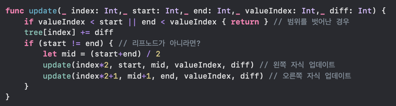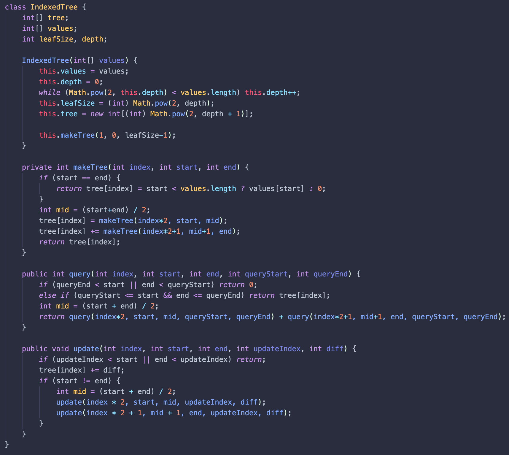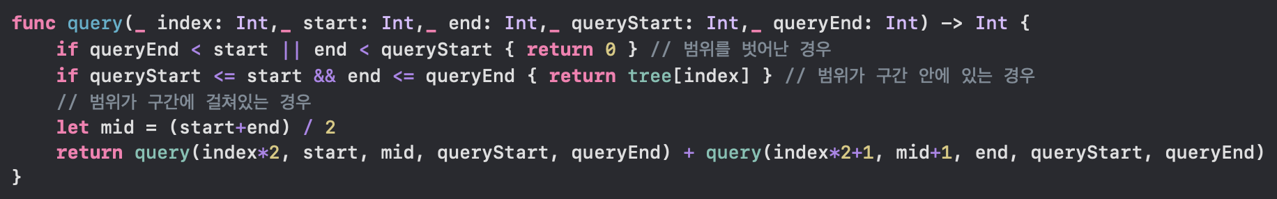 - queryEnd : 구간 합을 구하고자 하는 구간의 end 인덱스