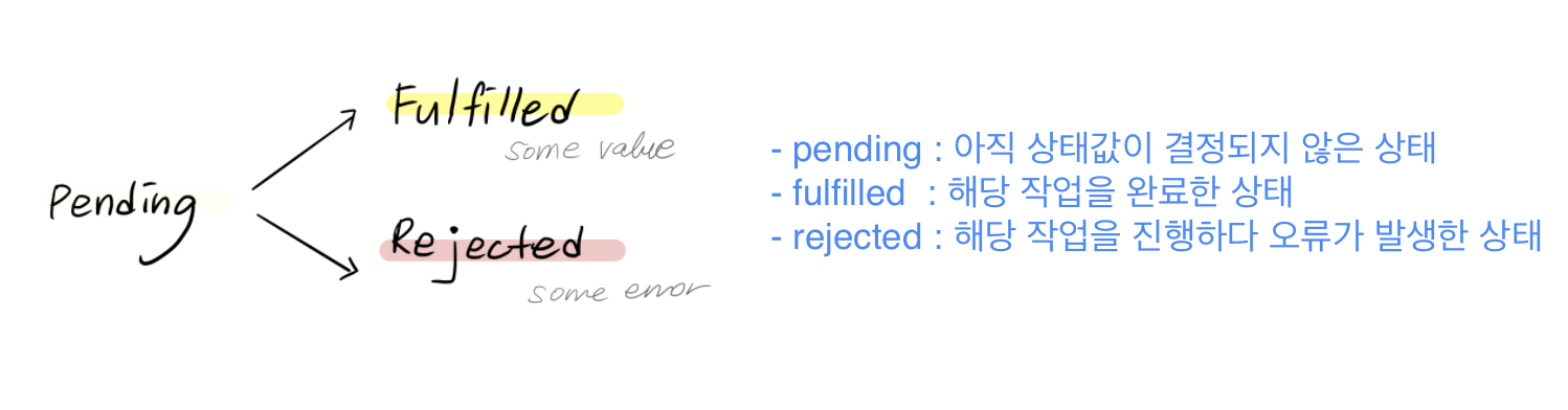 Promise는 아래 3가지 상태 중 하나를 가질 수 있습니다.