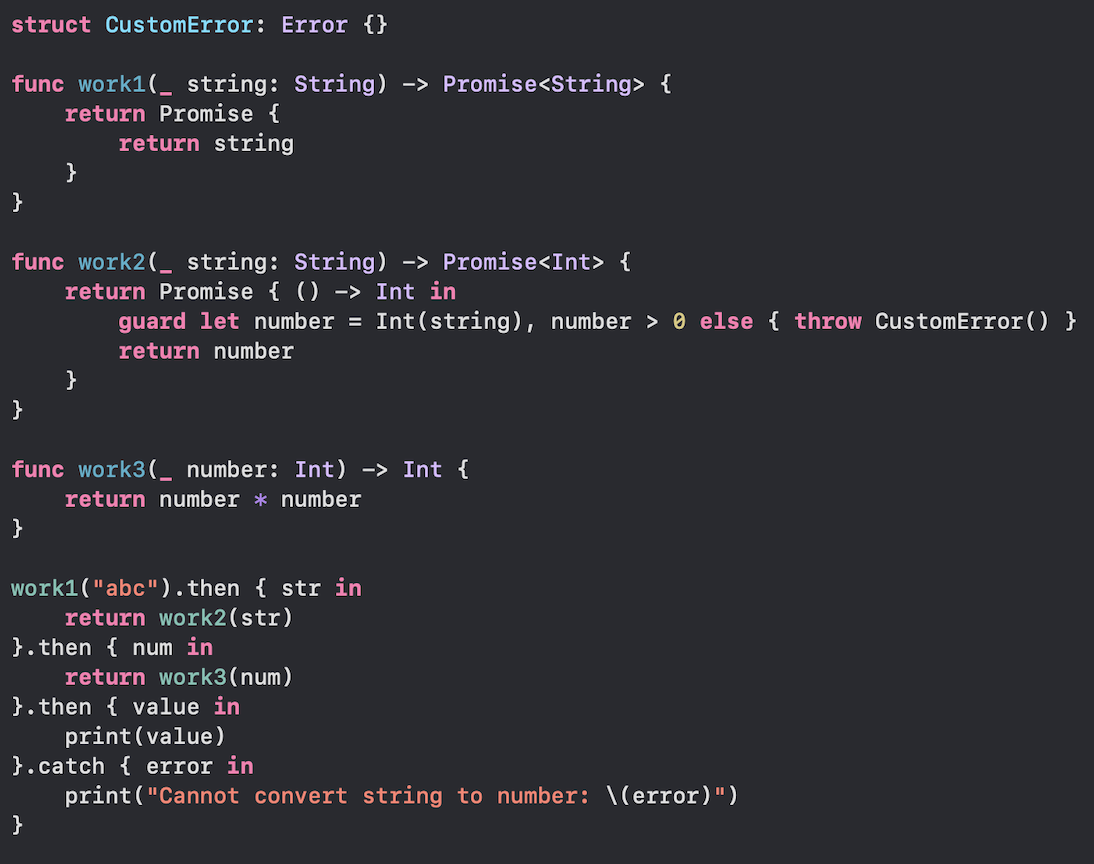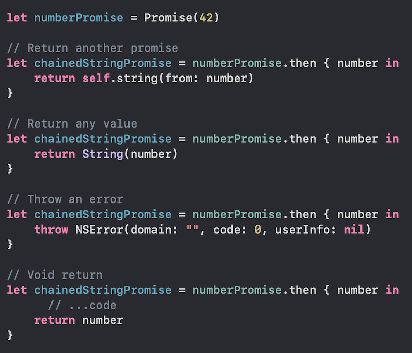 Promise 작업 블록에 비동기 처리가 필요하지 않은 경우에는 do 연산자 를 사용해서 더 간결하게 작성할 수도 있습니다.