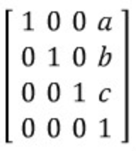 이 변환행렬 T는 4X4 행렬로 표현할 수 있는데, 아래와 같습니다.