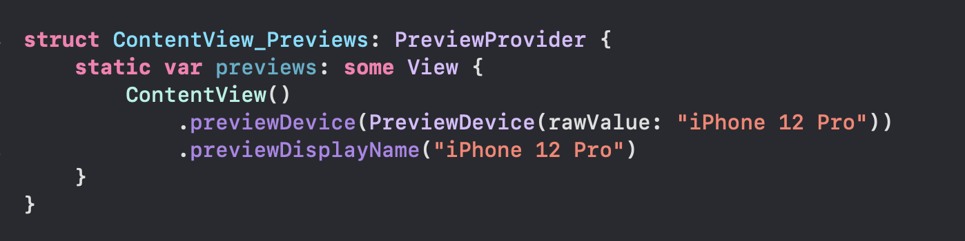 그리고 아래 코드를 추가해서 Preview에 보이는 디바이스의 종류와 이름을 바꿔줄 수도 있답니다 :)