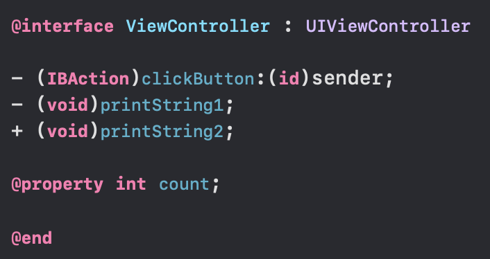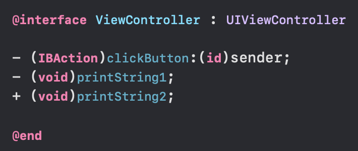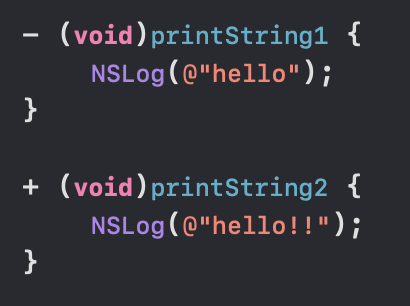 - 로 선언된 함수는 인스턴스 메서드, + 로 선언된 함수는 클래스 메서드입니다.