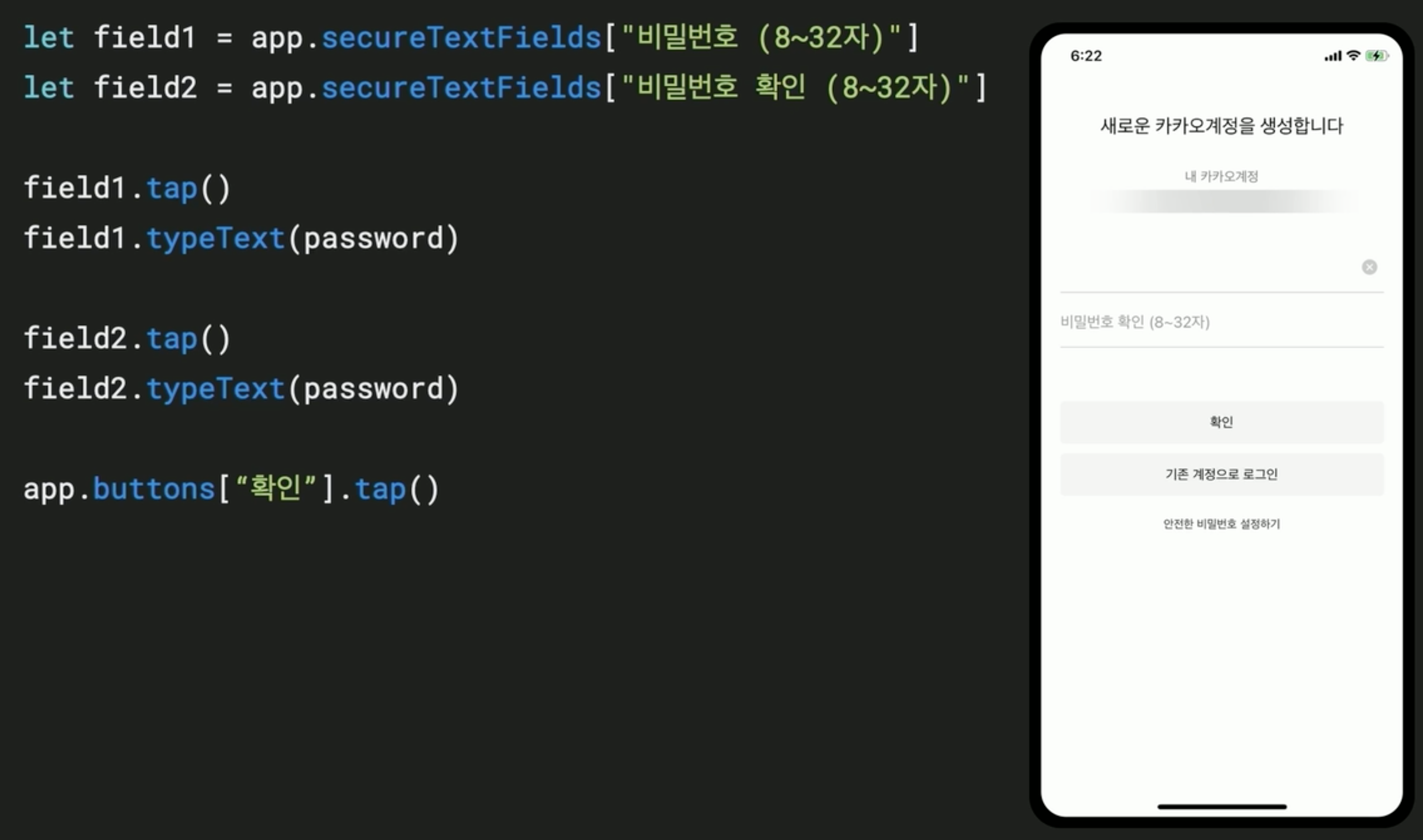 이번 화면에서는 전화번호를 입력하고 버튼을 클릭해 다음화면으로 넘어갑니다. 그리고 다음 화면은 SMS를 통해 인증번호를 입력하는 화면이 나옵니다. 여기서 UITest의 어려운 벽을 마주쳤습니다.