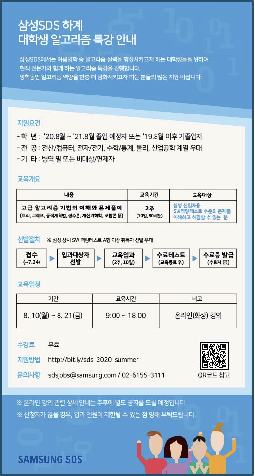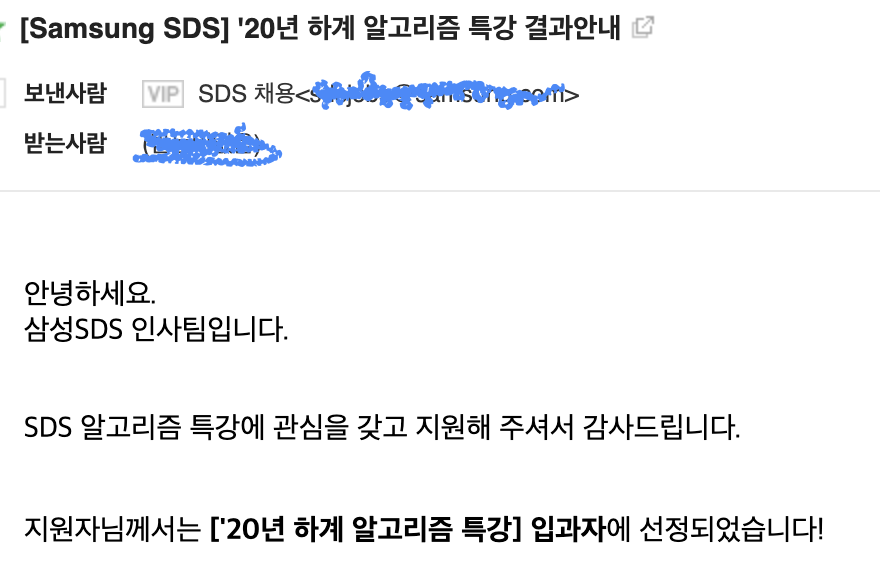 2020년 7월 중순에 우연히 삼성SDS 대학생 알고리즘 특강 모집 공고를 보게되어 지원했습니다.