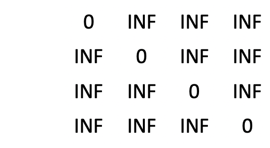 자기 자신으로 가는 거리는 0 그대로 두고, 나머지는 INF로 설정한다.